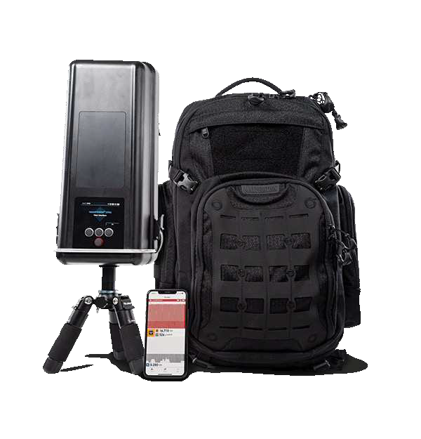 일반적인 배낭 형태로 제작되어 대규모 행사나 공공장소에서 눈에 띄지 않게(covert) 은밀한 감시 업무를 수행할 수 있습니다. 2″ x 4″ x 8″ 대형 NaIL 검출기를 탑재하여 감마 및 중성자 방사선을 동시에 탐지하며, 우수한 민감도로 아주 작은 방사선원도 빠르게 찾아냅니다. 인체공학적 설계로 장시간 착용이 편안하며, IP67 등급의 견고한 설계로 악천후 속에서도 안정적인 작동을 보장합니다. 무선 통신 기능을 통해 모바일 앱으로 원격 제어 및 데이터 확인이 가능하며, 사용자 배치 네트워크와도 쉽게 통합됩니다.